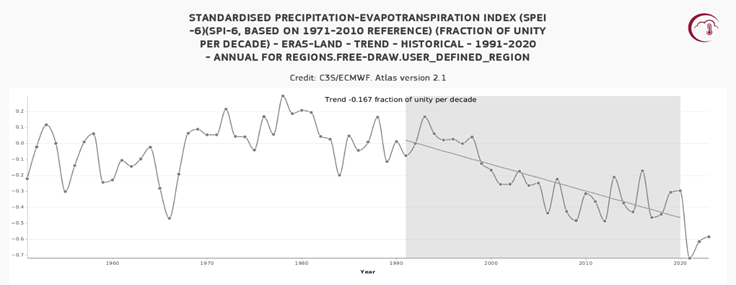 شکل 3. نمودار روند خشکسالی بر اساس شاخص spei طی دوره 1402-1330 شمسی در خاورمیانه