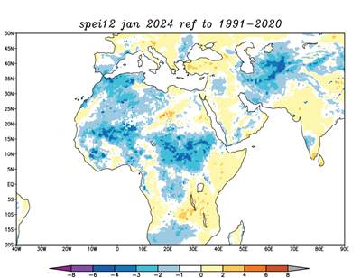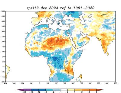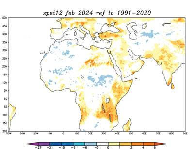 در ادامه برای نمونه نقشه های شاص خشکسالی spei برای ماه های بارشی سرد سال در غرب آسیا طی زمستان سال 1402 و بهار و پاییز 1403 به نمایش گذاشته شد تا بهتر بتوان تغییرات مقادیر بارشی و شدت خشکسالی قابل درک باشد. در نقشه ها مقادیر مثبت شاخص وضعیت ترسالی و منفی هم خشکسالی را به تصویر کشیده است. طبق نقشه های ترسیم شده می توان بیان کرد هر چقدر به سمت اواخر سال 1402 و بهار 1403 پیش می رویم از شدت خشکسالی کاسته شده و ترسالی ضعیف تا متوسط به ویژه در مناطق غربی و جنوبی ایران ایجاد شده است. در پاییز 1403 نیز گستره ترسالی به سمت دیگر نواحی از جمله مناطق مرکزی کشور نیز رسیده است. در دیگر مناطق تحت واکاوی نیز طی ماه های مختلف با شدت های متنوعی از وضعیت بارش مواجه شده اند حتی منطقه شرق مدیترانه و کشور های لبنان، اردن و فلسطین اشغالی نیز با خشکسالی شدید مواجه بوده اند (آذر ماه 1403، دسامبر 2024).